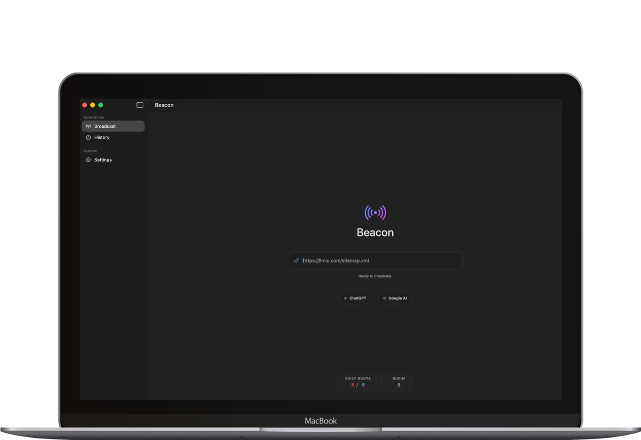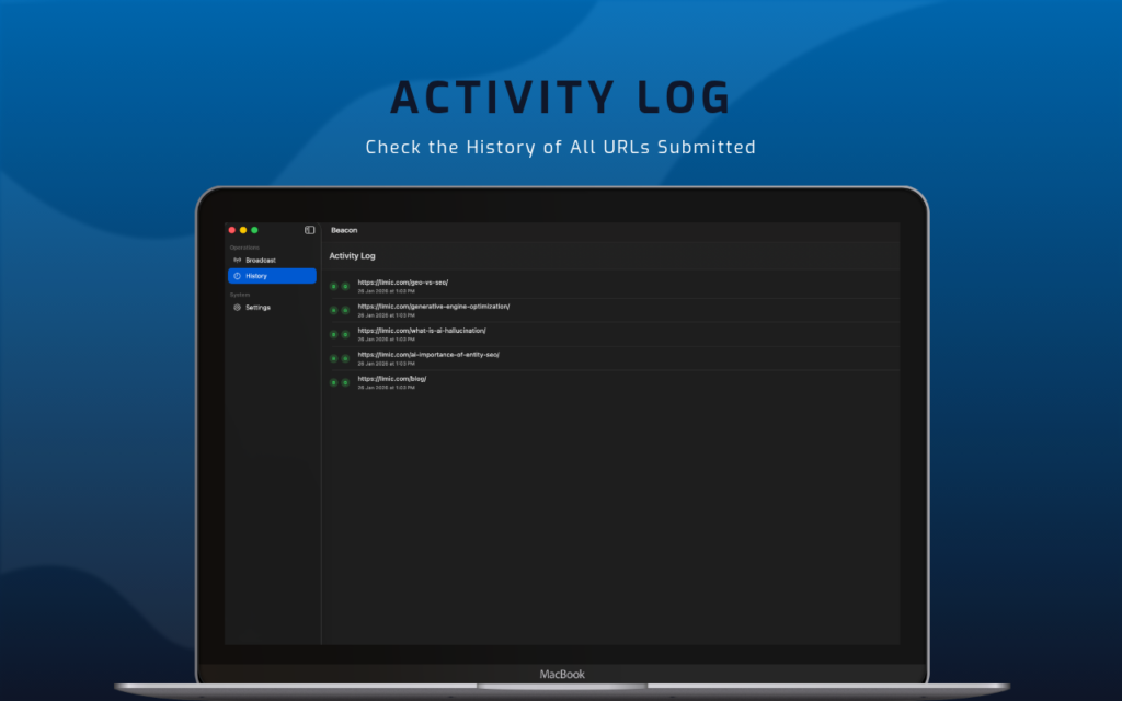 Don’t wait weeks for crawlers. Beacon speaks directly to Google and Bing API to notify them of your new content immediately.